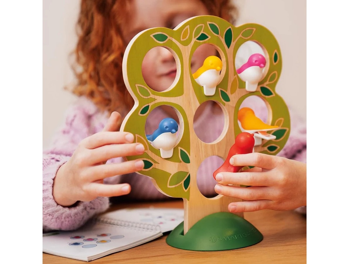 A madarak fára történő felcsippentése elősegíti a gyerekek szem-kéz koordinációs készségeinek fejlődését. A feladványok értelmezése trenírozza a megfigyelő képességet, hiszen a kártyán látható módon kell elhelyezni a madarakat, majd megoldani a feladatot. A kihívások teljesítése leginkább a logikus gondolkodást, a problémamegoldó képességet fejleszti, miközben a gyermek aktívan használja a rész-egész látásmódját és rugalmas gondolkodását is. A kihívások végigjátszása nagymértékben hozzájárul a gyermek által érzett sikerélmények megéléséhez, önbizalmának növekedéséhez.