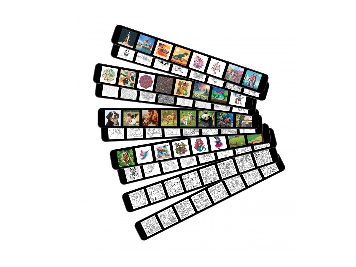 Vetítsd ki a fekete-fehér képet egy papírlapra, rajzold meg a körvonalakat, majd vetítsd ki a színes változatát is, hogy segítségedre legyen a színezésnél! A játék 30 különböző rajot tartalmaz fekete-fehér és színes verzióban. A rajzoló projektor kiváló lehetőséget biztosít a gyermek grafomotoros képességeinek trenírozásához. A projektor állvány része tárolóhelyet biztosít a számtalan kiegészítő számára (ceruzák, radír, stb.).