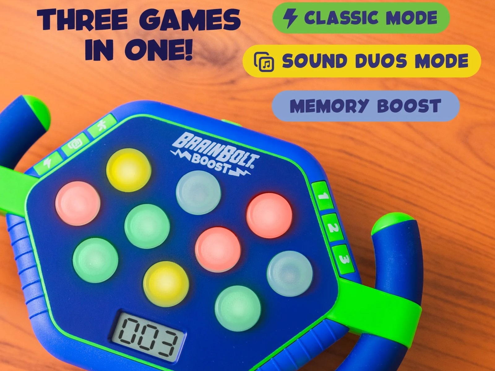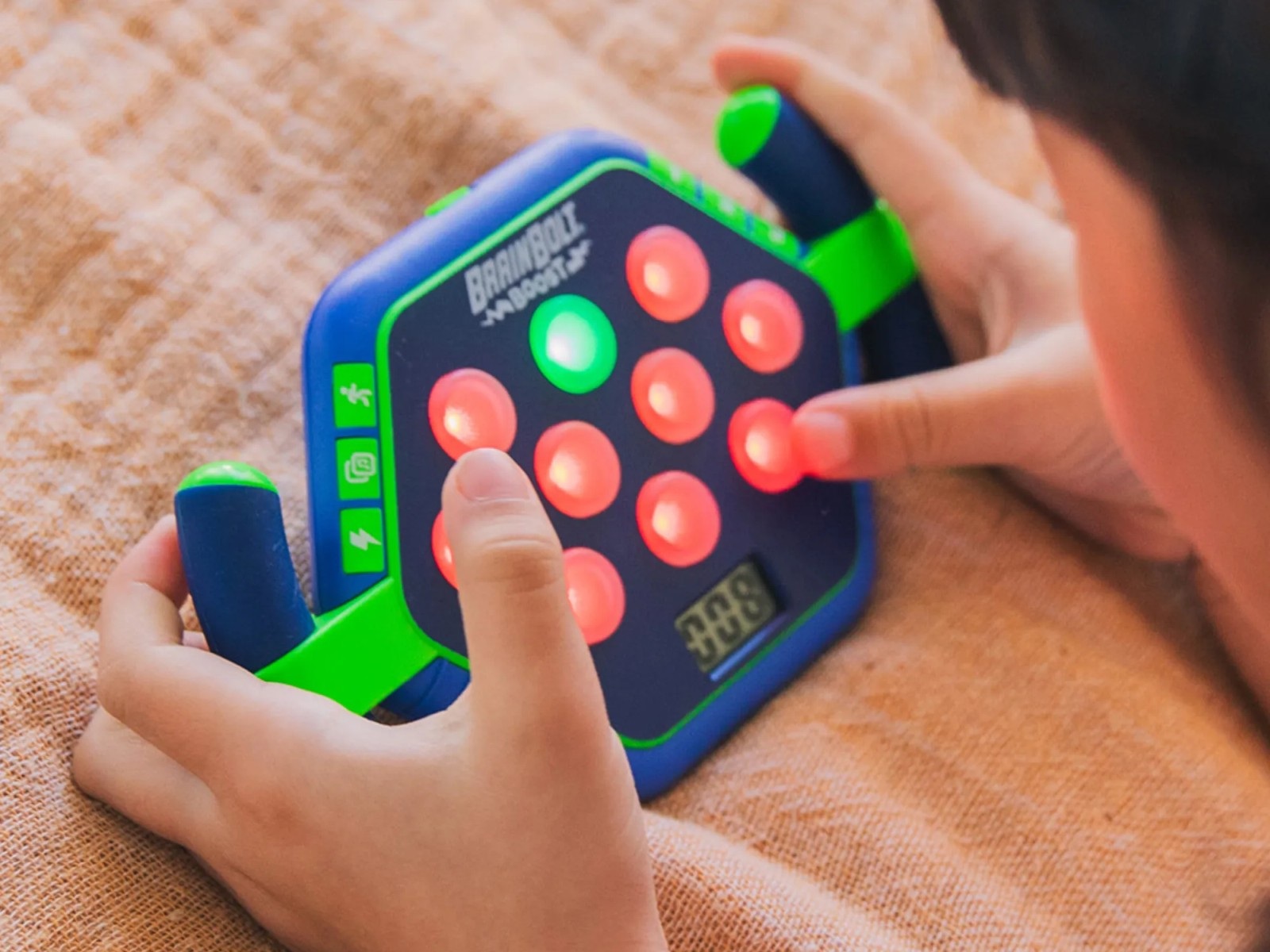 Mi a legfontosabb különbség az eredeti Brainbolt és a Brainbolt Boost között? A Boost verzióban a gombok nagyobbak, a játék jól megmarkolható, a gyártó próbált az óvodások számára is kézreálló terméket készíteni.